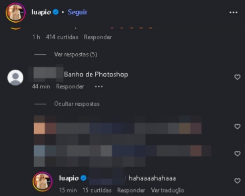 Entre elogios, houve um usuário que afirmou ter um "banho de Photoshop" nas imagens de Piovani e a atriz reagiu. Veja: